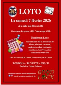 Loto organisé par l’Amicale des Sapeurs-Pompiers de Bû à la salle des fêtes le samedi 7 février